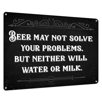 Beer Because H20 Never Wins Friends 9 X 12 Inch Metal Sign Funny Beer Signs Man Cave Brewery Bar Accessories Decor And Gifts For Beer Lovers Dads Guys And Boyfriends Rk1064ala 9x12 Wantitall from m.media-amazon.com