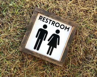 Restroom Sign. Rustic Modern Restroom Sign. Restroom Wall
